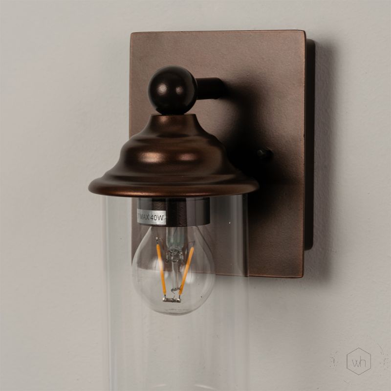 The Colonial Alteza Brown Wall Lamp is a sophisticated blend of vintage charm and modern functionality. Featuring a robust metal frame with a rich brown finish, this lamp enhances any space with its timeless appeal. The clear glass shade allows for a radiant glow, creating a warm and welcoming ambiance. Ideal for entryways, hallways, patios, and living spaces, it adds a touch of colonial elegance to your decor.