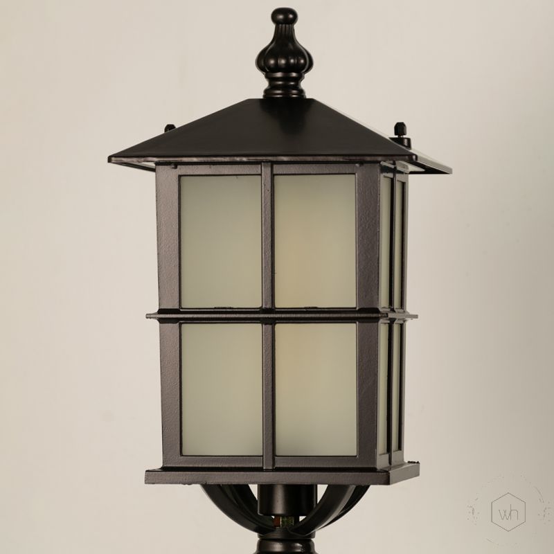 Design: Elegant pole light with glass panels, providing a soft, inviting illumination