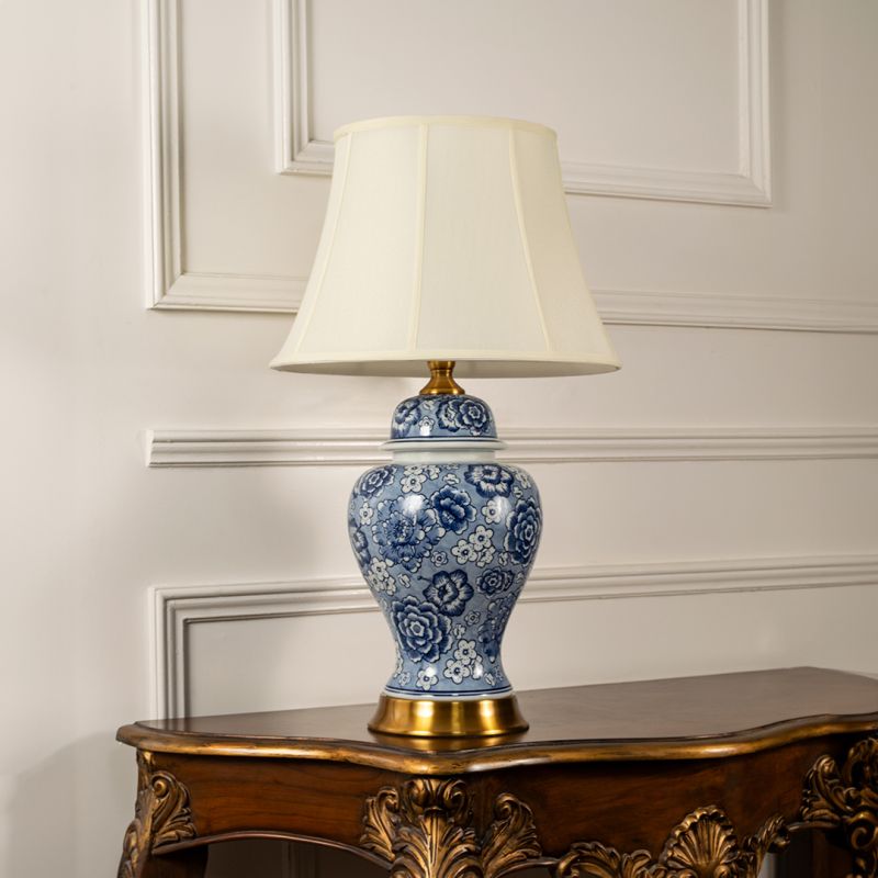 Blue Floral Porcelain Table Lamp With Classic Bell Shade