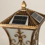 The video showcases the lantern’s elegant curves, frosted panels, and decorative scrollwork with smooth on/off transitions and zoom-in and zoom-out views. The solar-powered top is highlighted as both functional and discreet, offering soft, ambient light with timeless charm.