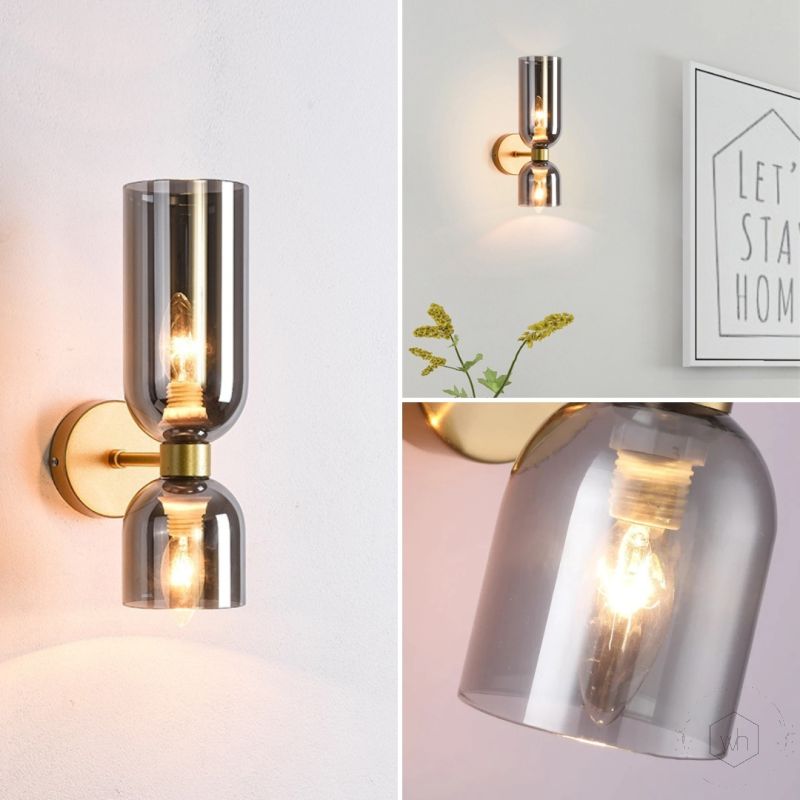 Modern Dual Light Smoky Grey Glass & Metal Wall Light