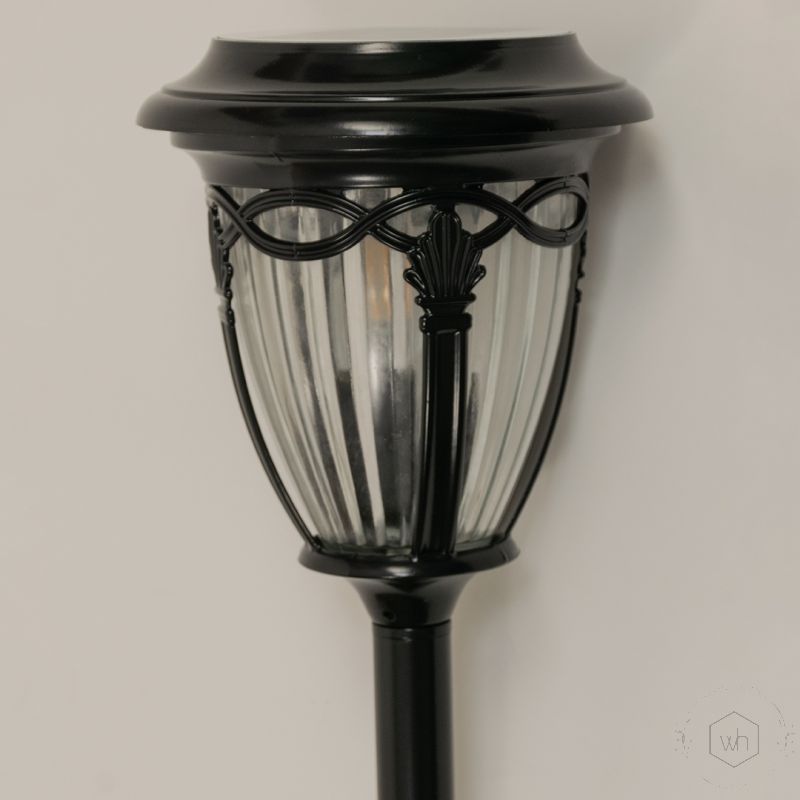 Design: Elegant stake light with clear glass, designed to emit a soft, ambient light