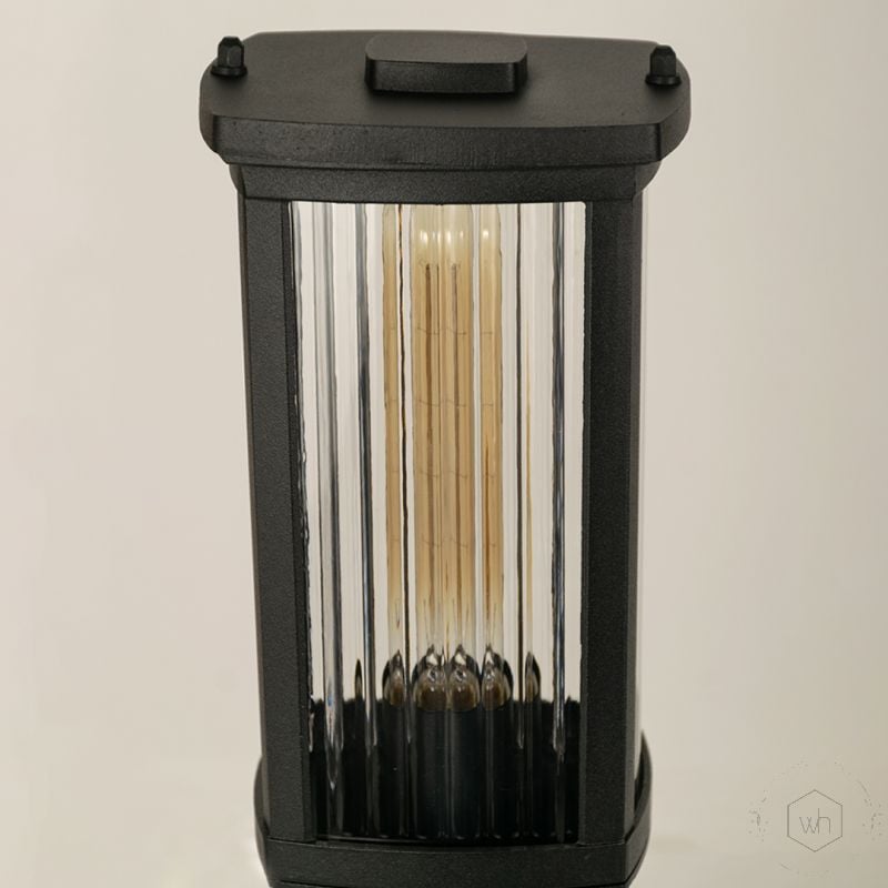 Defined by vertical ribbed glass and a matte black frame, this fixture brings modern utility to outdoor spaces. The video captures its crisp structure and clear light projection for driveways and pathways.
