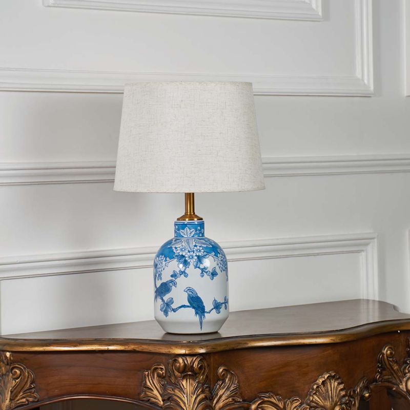 Illuminate your space with the elegance of the White and Blue Ceramic Table Lamp, a perfect addition to any room that needs a touch of sophistication.