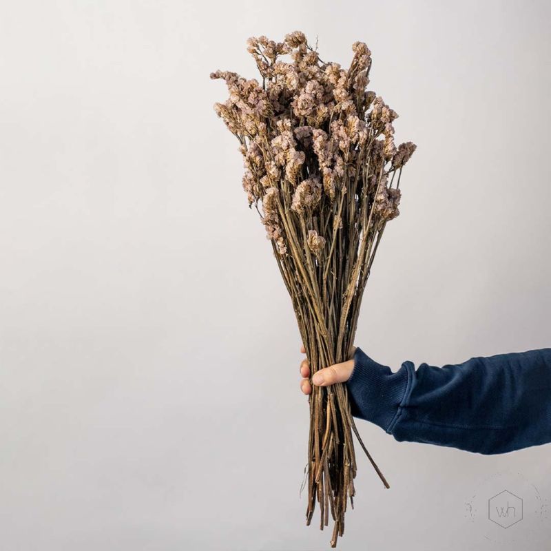 Introduce a soft and nostalgic touch to your decor with this hand-held bouquet of dried statice flowers in a delicate lavender tone. Ideal for adding vintage flair to any setting, these blooms offer enduring elegance with zero maintenance.