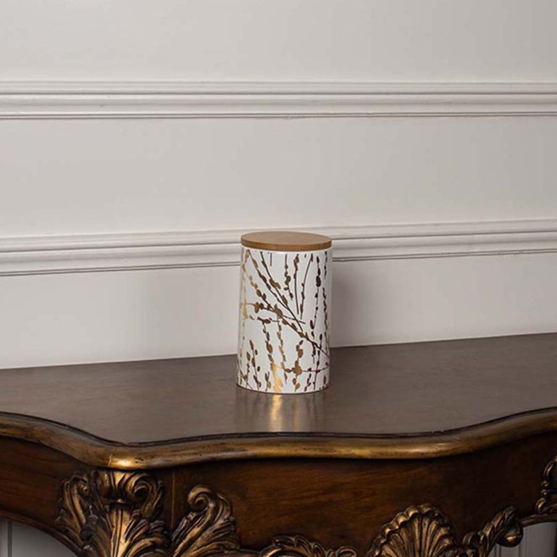 Enhance your home decor with the elegant White Ceramic Vase with Golden Highlights, designed to bring a fresh, contemporary touch to any room.