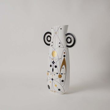 This patterned ceramic vase pairs well with boho, modern, and eclectic spaces, especially when layered with neutral or natural decor.