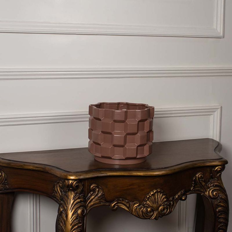 With its warm brown hue and geometric design, this vase enhances modern, minimalist, rustic, and industrial decor styles.