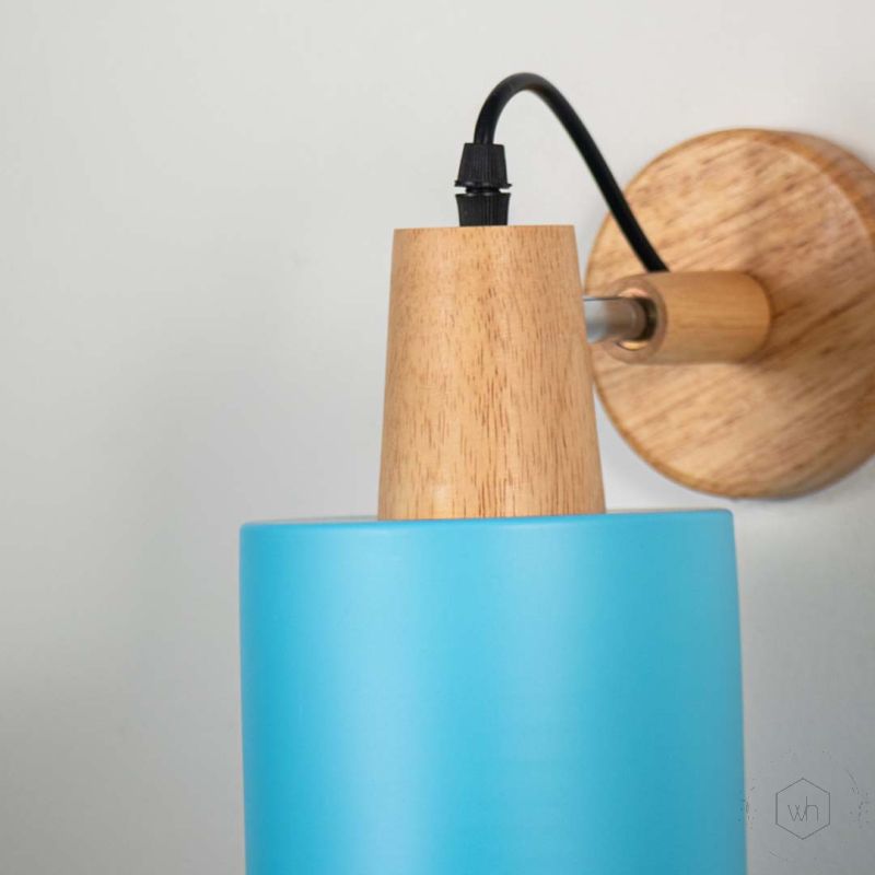 Illuminate your space with the serene glow of our Long Wooden Wall Light in calming blue, adding elegance and warmth to any room.