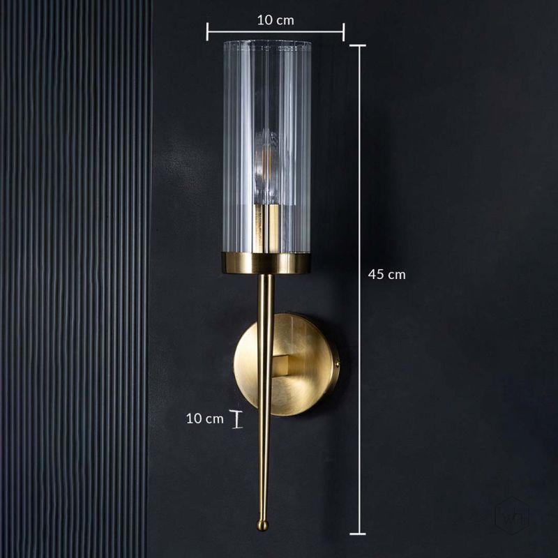 The Modern Cylindrical Glass Wall Light is a stylish fixture that adds sophistication and warmth to any room. Its gold-toned metal frame paired with a clear cylindrical glass shade creates a timeless, elegant look, perfect for bedrooms, hallways, or living areas needing ambient lighting.