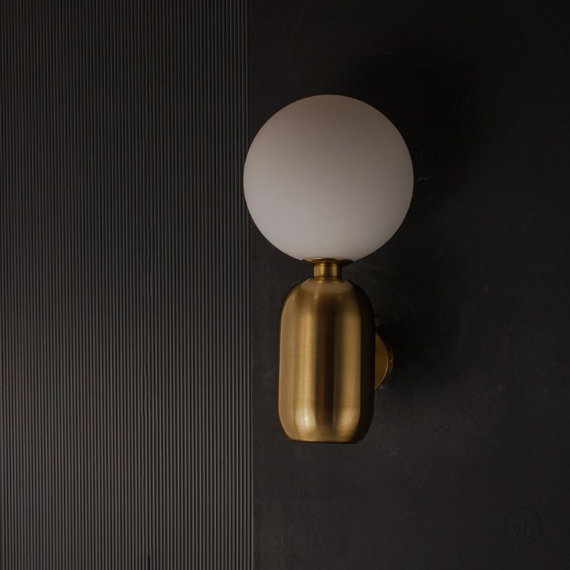 The Aballs Wall Light in gold and white is a chic and modern fixture that brings elegance and a soft glow to any room. With its rounded white globe and sleek gold base, this wall light adds a touch of luxury and warmth—perfect for bedrooms, hallways, or contemporary living spaces.