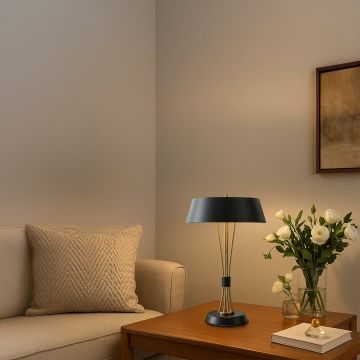 Introducing our minimalist electric table lamp, designed with sophisticated industrial themes that seamlessly blend with various interior palettes and home decor styles. Crafted from premium quality metal, it features a classic golden-silver twin shade that adds a touch of elegance.