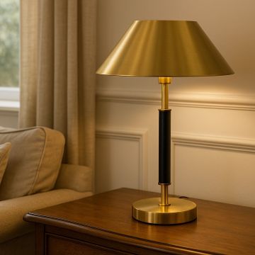 Elevate your interiors with this minimalist electric table lamp, featuring a sophisticated industrial design. Crafted from premium metal and paired with a golden-silver twin shade, it brings subtle elegance and modern charm to any space.