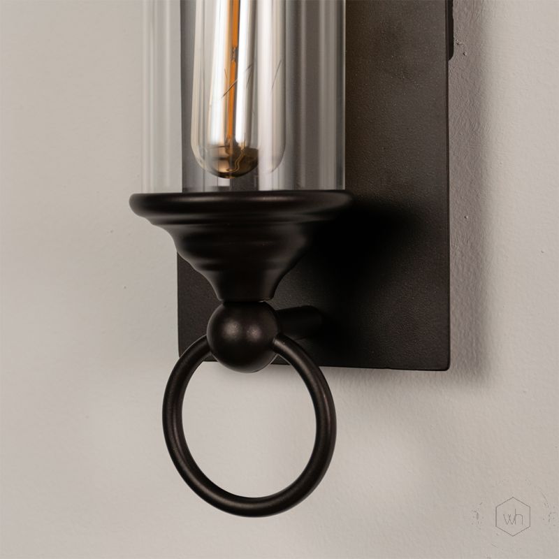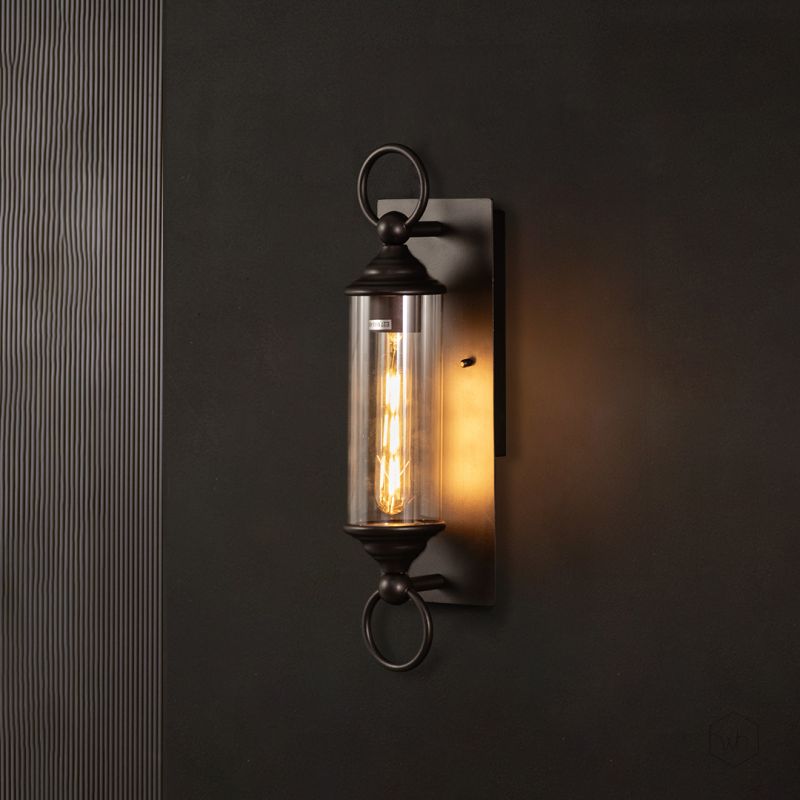 The Alteza Closed Wall Sconce is a striking combination of modern design and vintage charm. Featuring a sleek metal frame with a deep brown finish, this sconce adds a touch of elegance to any space. The clear cylindrical glass enclosure enhances the warm glow of the light, making it ideal for hallways, patios, and living areas. Its unique closed design offers a sophisticated appeal while ensuring durability.