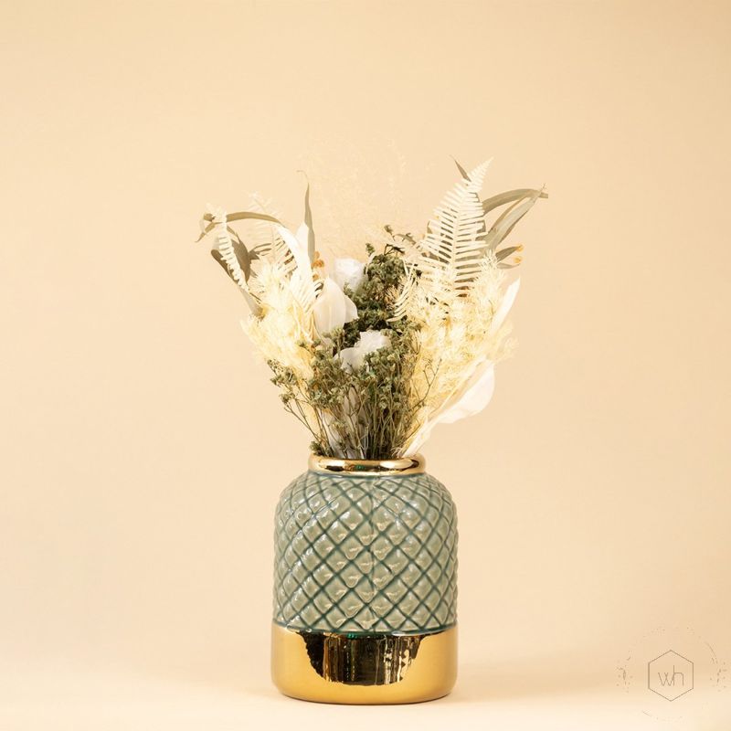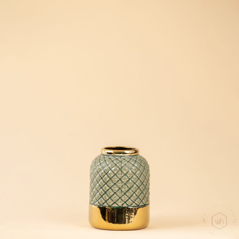 Add a touch of charm to your home with the Small Decorative Stylish Green-Gold Ceramic Vase, a unique blend of green and golden hues that brings a vibrant pop of color to any space.
