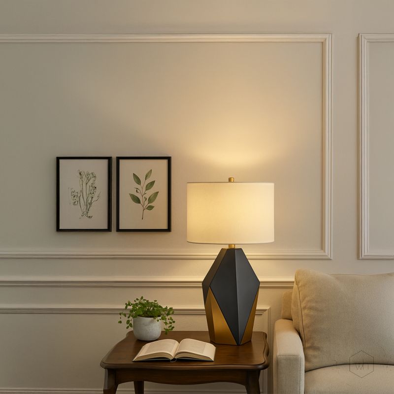 This lamp is crafted with a sturdy metal base, ensuring durability and a premium finish. The shade is made from high-quality fabric to create a soft, diffused lighting effect.