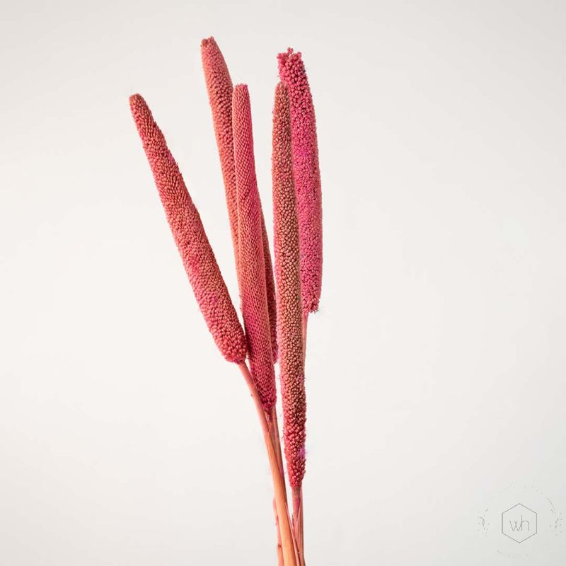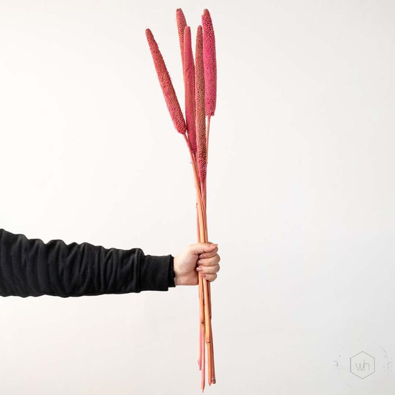 A pink dried grass that adds an aesthetically pleasing touch to any theme home decor.