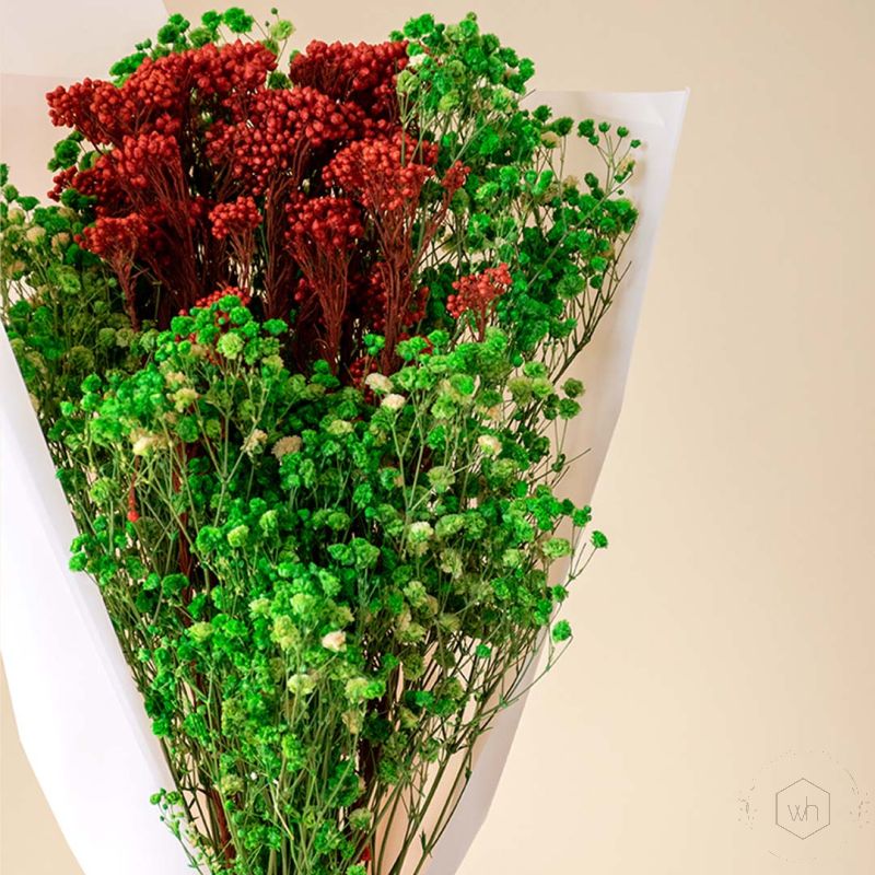 Brighten up your home with the Blooming Dried Bouquet, a stunning mix of preserved babysbreath in three vibrant hues. This arrangement brings a fresh and lively touch to any room, creating a focal point that captures attention and adds a burst of color.
