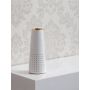 Sleek Modern Design: An elongated cylindrical shape with a minimalist aesthetic.
