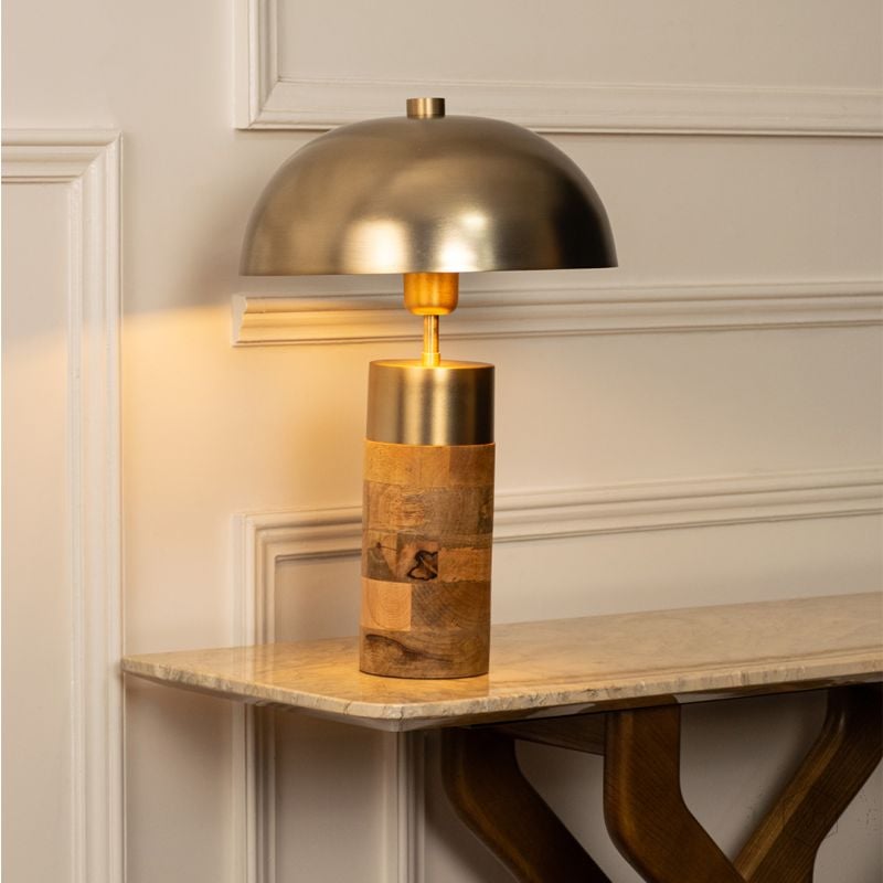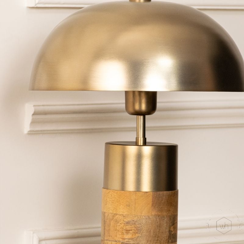 The video highlights the lamp’s refined silhouette through seamless on/off lighting transitions and zoom-in and zoom-out views. The warm wood base and gleaming brass dome come to life, showcasing the perfect balance of natural texture and radiant glow for modern interiors.