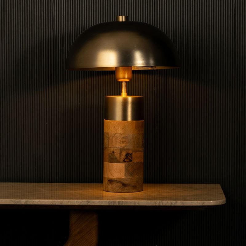 Enhance your bedroom with the Belle Vasco Metal Table Lamp, an elegant choice for bedroom side table lamps, featuring a stunning gold finish and refined wood accents for a touch of luxury.