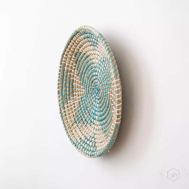 Berrada Handwoven Sabai Grass Hanging Wall Basket - Turquoise