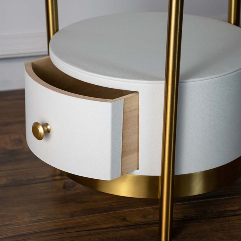 Yes, it includes a functional storage space with a tabletop and a drawer, making it a practical addition to any room.