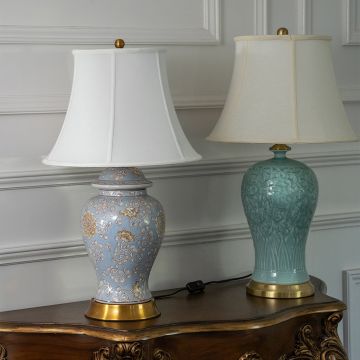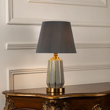 Use a soft, dry cloth to dust off the lamp and tabletop. Avoid using harsh chemicals or water to clean the surface.