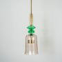 The video captures the pendant’s vibrant emerald green glass and rippled texture through smooth on/off transitions and zoom-in and zoom-out views. Brass accents add warmth and contrast, making this piece a standout in plant-filled or eclectic interiors.