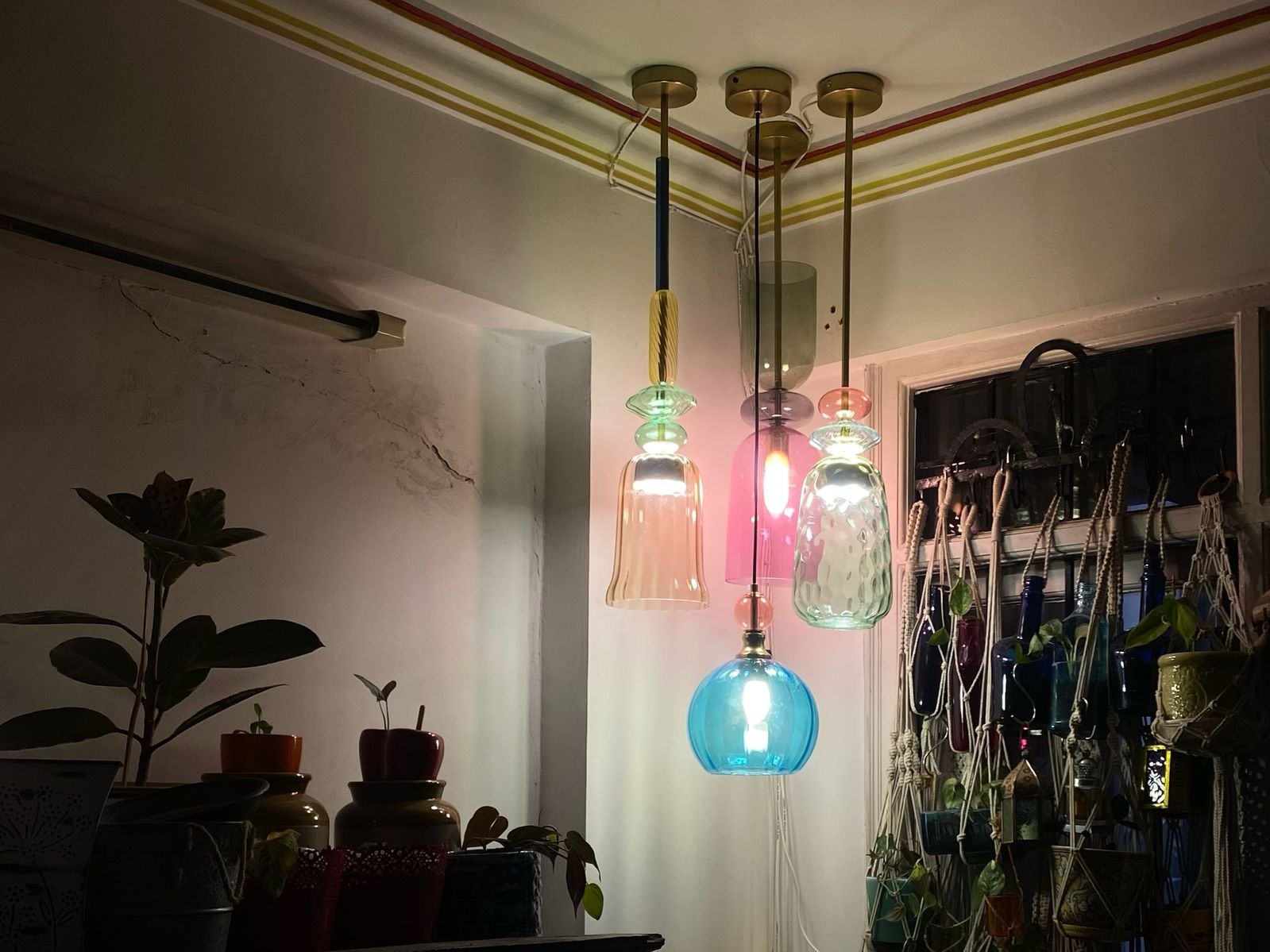 The Candy Color Modern Pendant Light in Blue, Yellow, and Green adds a playful and vibrant touch to any room. Perfect for modern interiors, it combines colorful elegance with functional lighting.