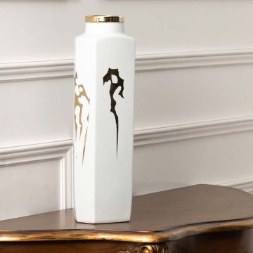 The gold detailing is a high-quality ceramic glaze, designed to be long-lasting. To maintain its shine, avoid using harsh chemicals or excessive rubbing.