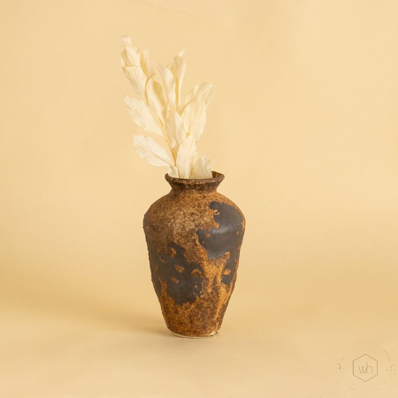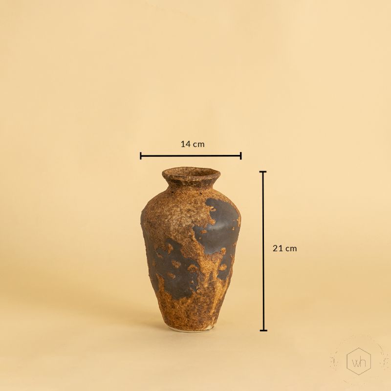 Absolutely! The vase’s weathered texture and earthy tones make it an ideal centerpiece for farmhouse, vintage, or industrial decor styles.