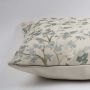 This cushion cover features a calming blue shade combined with a glossy green, reminiscent of a refreshing spring. Made from high-quality cotton and adorned with floral embroidery on a soft white background. Ideal for adding a touch of comfort and style to any room or as a thoughtful gift.