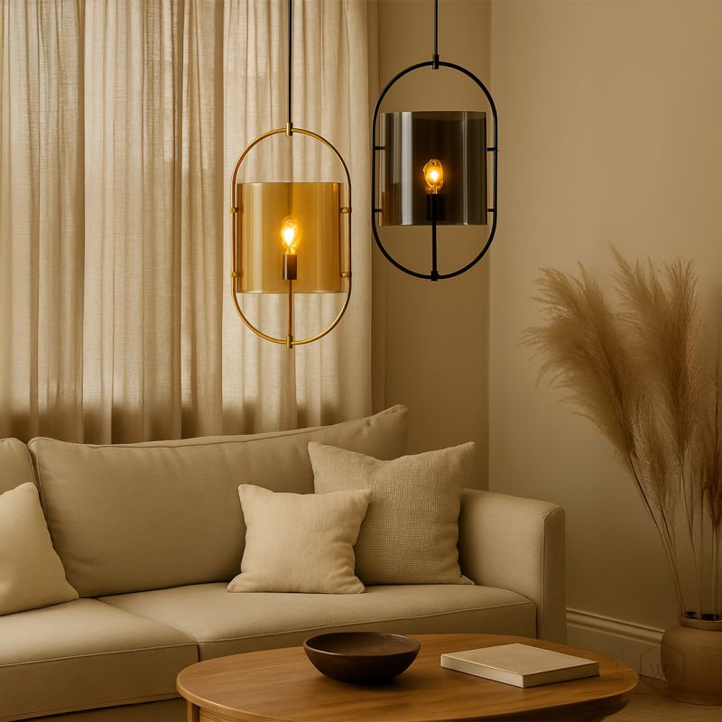 The amber-toned glass softens the light, creating a warm and cozy glow perfect for ambient lighting.