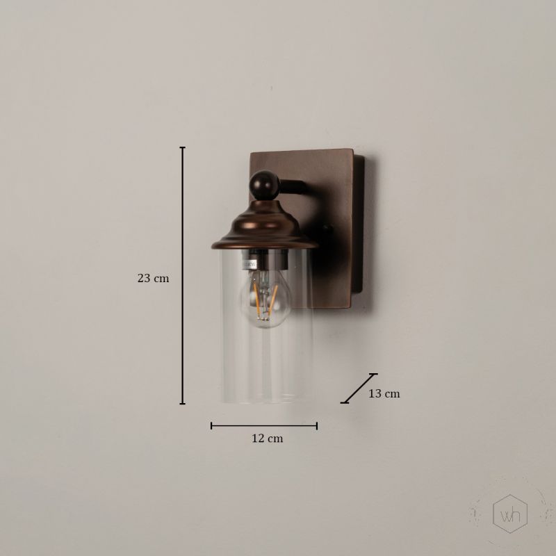 The Colonial Alteza Brown Wall Lamp is a sophisticated blend of vintage charm and modern functionality. Featuring a robust metal frame with a rich brown finish, this lamp enhances any space with its timeless appeal. The clear glass shade allows for a radiant glow, creating a warm and welcoming ambiance. Ideal for entryways, hallways, patios, and living spaces, it adds a touch of colonial elegance to your decor.