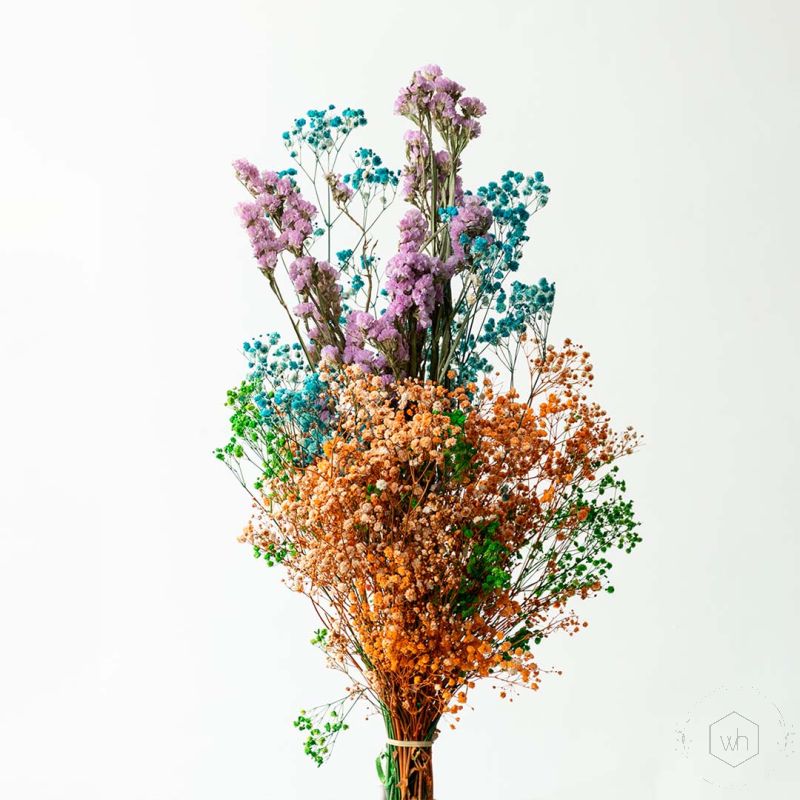 Composition: A charming assortment of handpicked preserved Babybreath flowers in vibrant hues