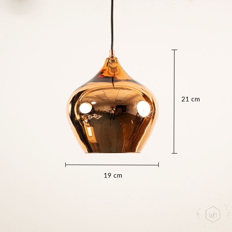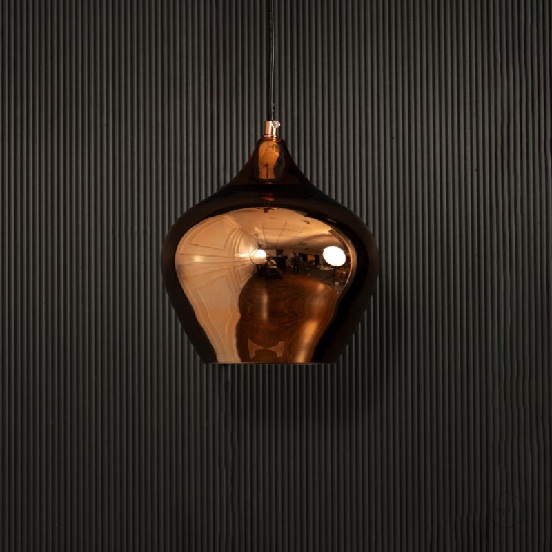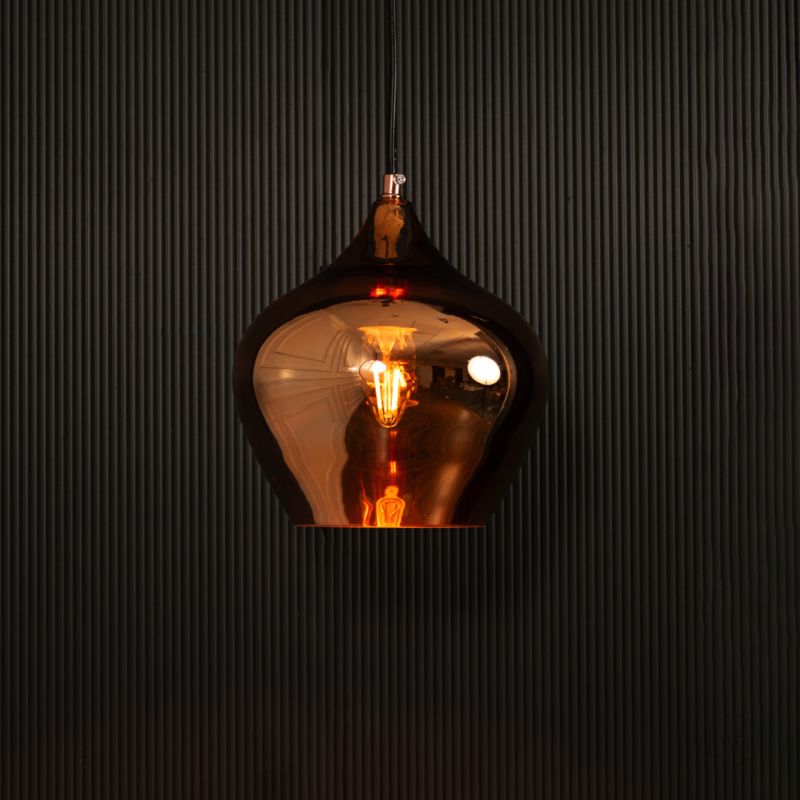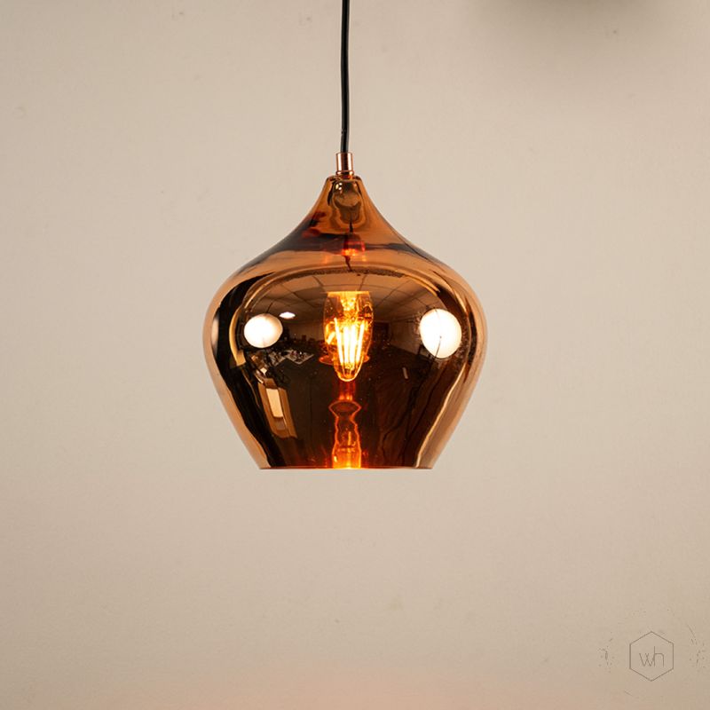 The Contemporary Style Glass Hanging Pendant Light- Rose Gold features a charming, rounded design with a glossy finish, adding a playful yet sophisticated touch to any space.