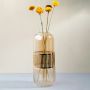 Elevate your home decor with the Derifa Glass Vase - Large, handcrafted from high-quality amber glass with a golden accent. Its rich tones and subtle shimmer make it a stunning centerpiece for dried flowers or as standalone decor.