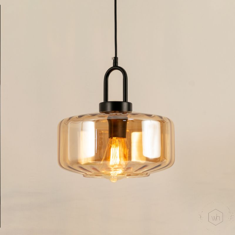 Showcasing a wide, rounded amber glass shade with a classic filament bulb, this pendant blends retro charm with modern simplicity. Its warm glow and refined shape make it a perfect fit for cozy, stylish interiors.