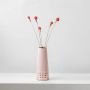 Make a stylish statement with this soft pink ceramic vase featuring coral pom-pom flowers. With gold accents and a perforated pattern, it brings modern design and playful charm to your home décor.