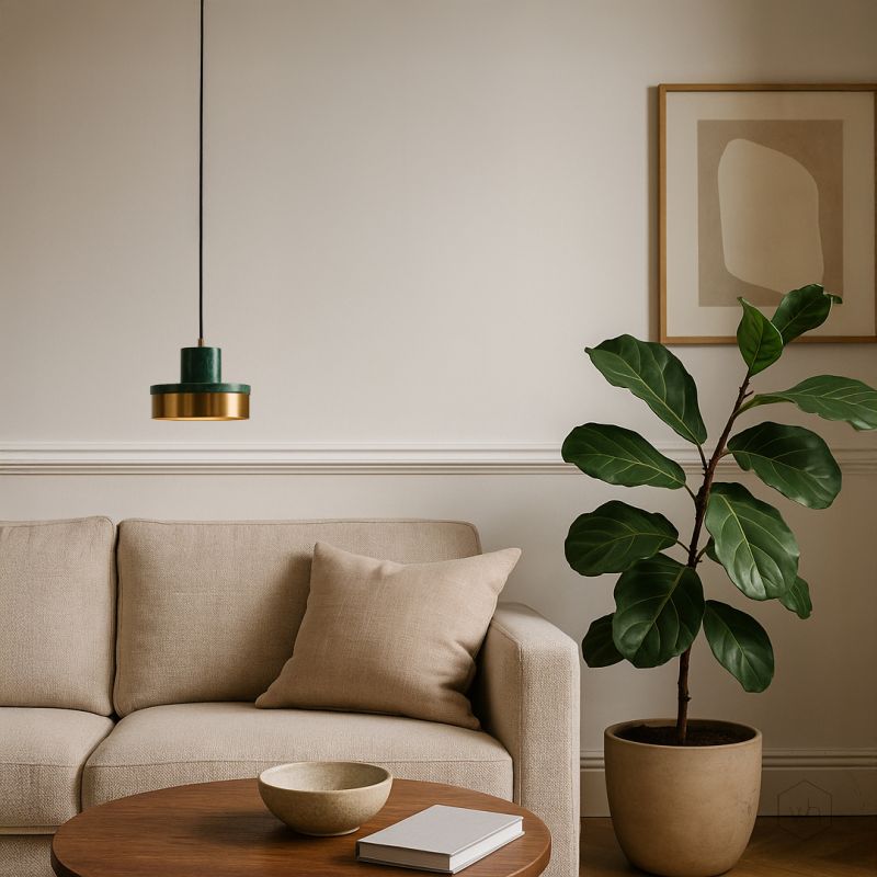 Yes, the deep green with natural veining pairs beautifully with warm-toned woods, brass, and neutral stone finishes for a sophisticated look.