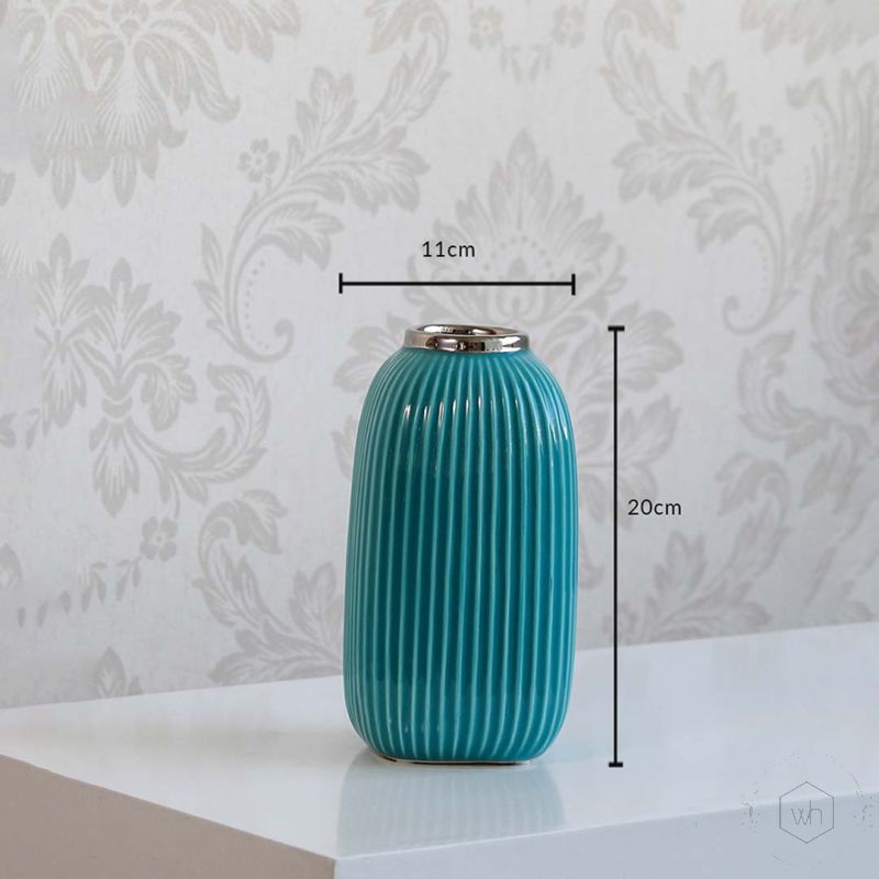 With its textured finish and metallic accent, this vase blends well with modern, contemporary, and minimalistic interiors.