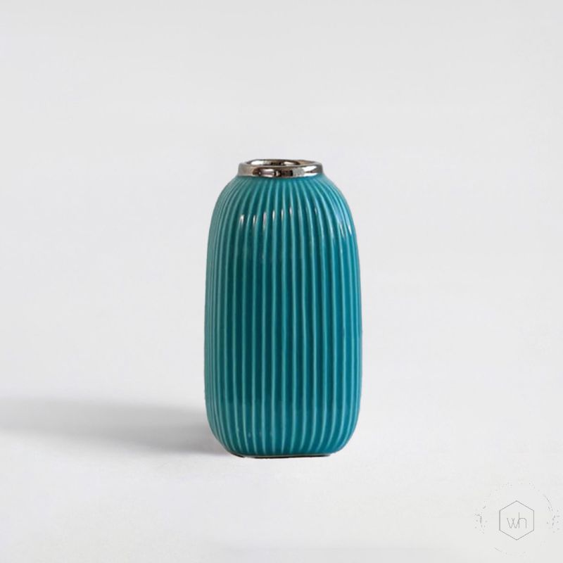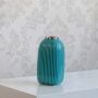 The Dune Vase in turquoise captures the sea’s beauty with its striking textured stripes. Its watertight design is perfect for indoor spaces, adding elegance to any room. Ideal for showcasing flowers on large tables in entertainment areas.