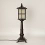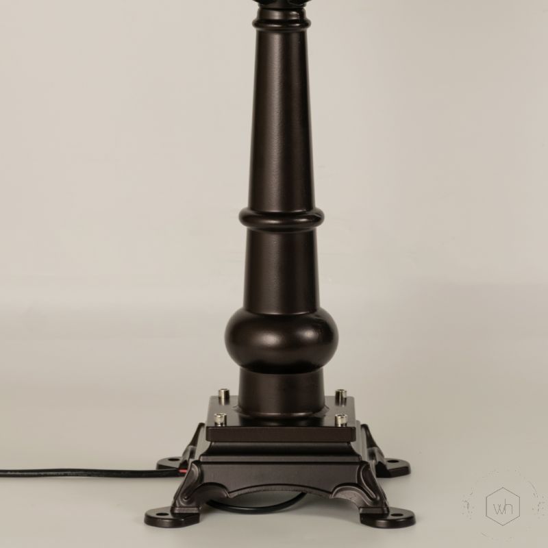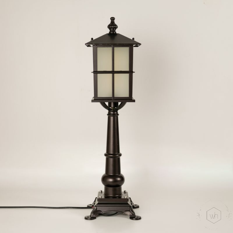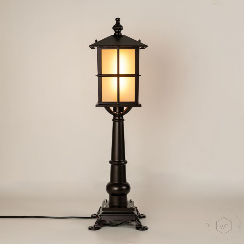 Design: Elegant pole light with glass panels, providing a soft, inviting illumination