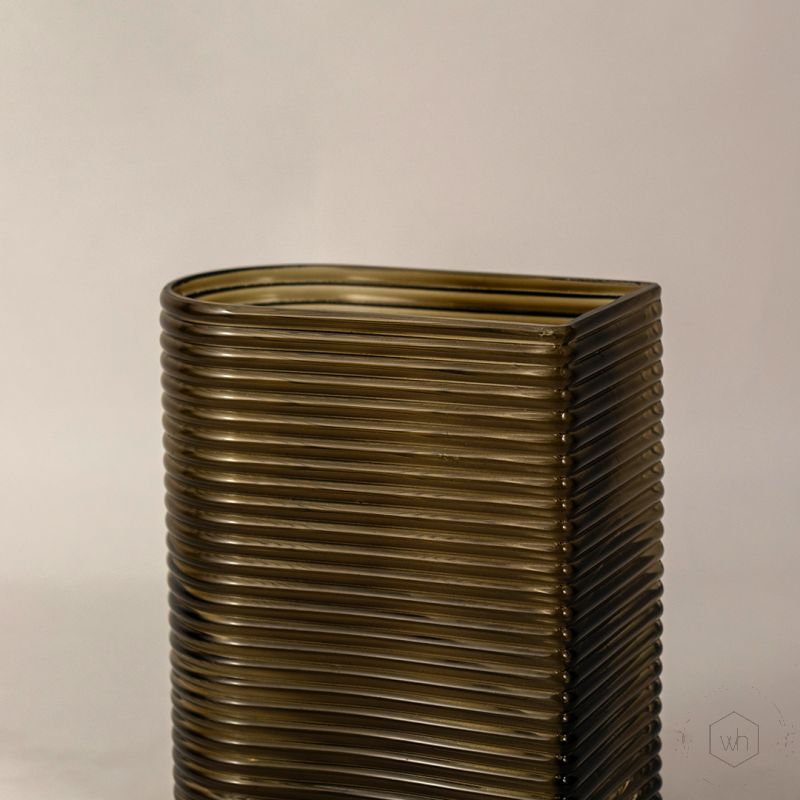 Yes, the vase’s smoked glass and geometric ribbed design make it an ideal addition to modern, industrial, and minimalist interior styles, adding texture and depth to the decor.