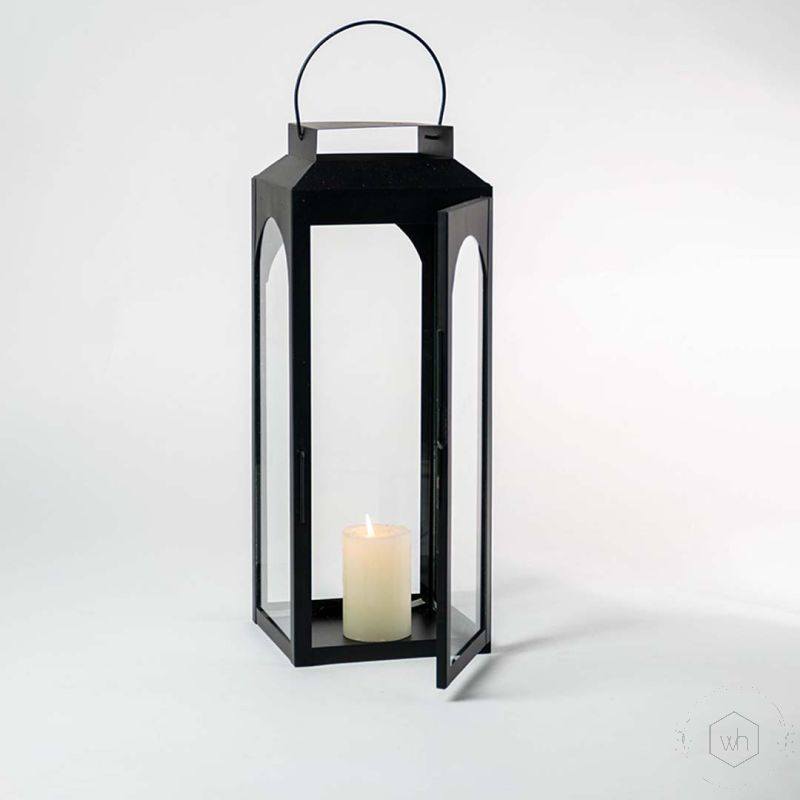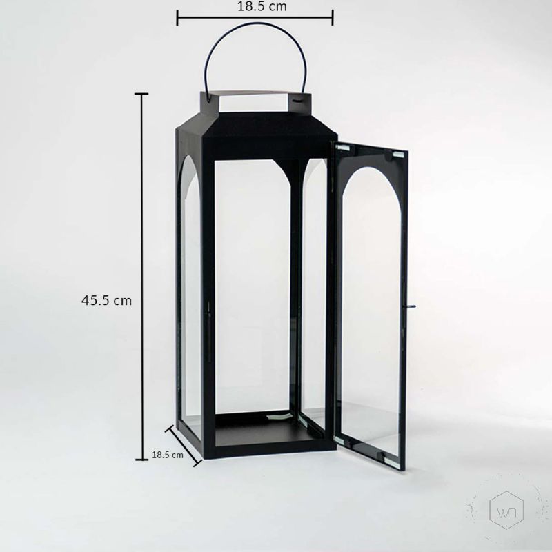 The lantern is crafted from high-quality metal and glass, offering a rustic yet elegant appeal.