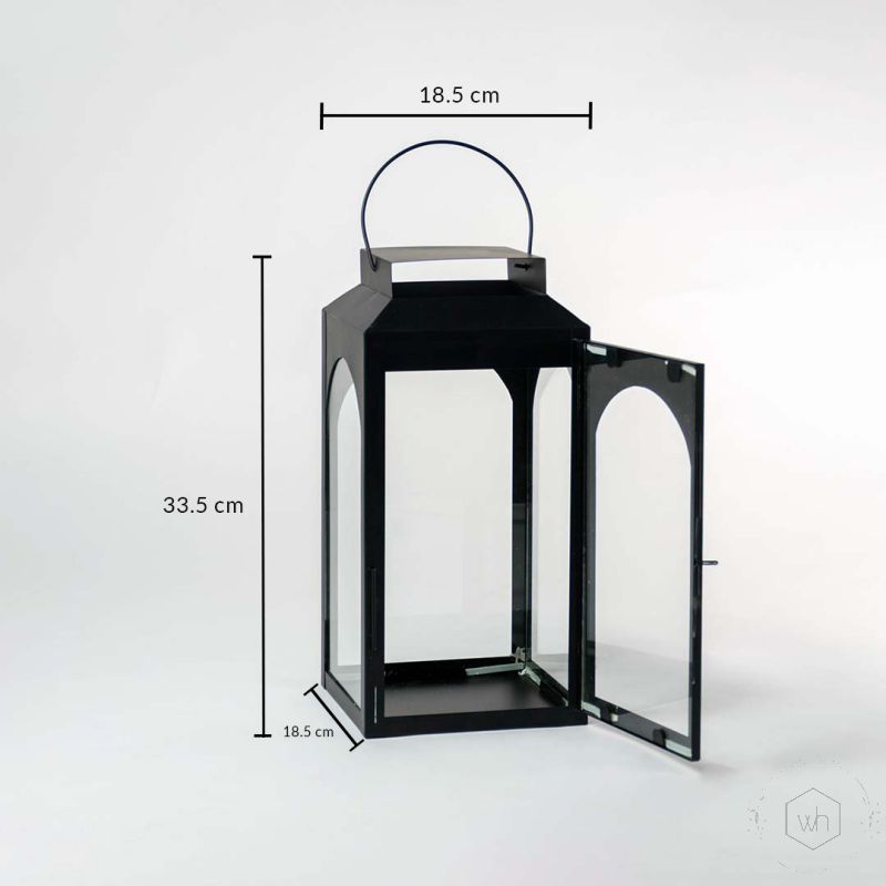 The lantern is crafted from high-quality metal and glass, offering a rustic yet elegant appeal.