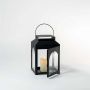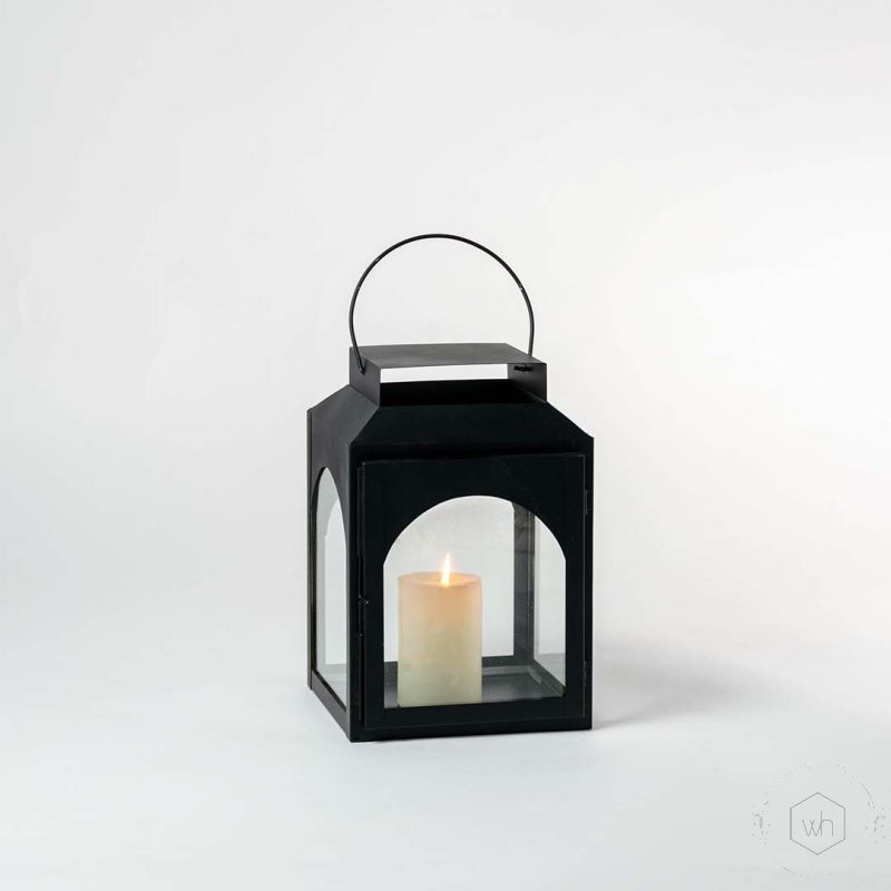 The lantern is crafted from high-quality metal and glass, offering a rustic yet elegant appeal.