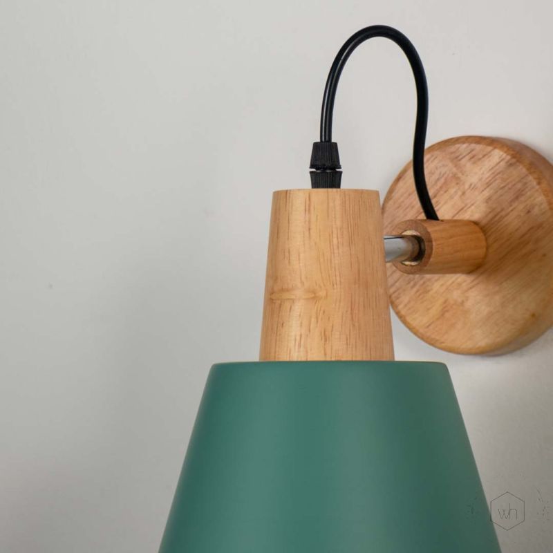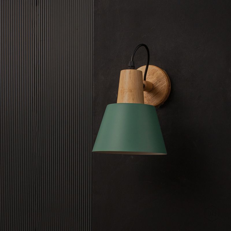 Bring a refreshing pop of color and natural charm to your interiors with this modern wall sconce. Featuring a conical green metal shade and smooth wooden elements, it offers a Scandinavian-inspired design perfect for contemporary homes. The product video highlights the light turning on and off, along with zoom-in and zoom-out views that showcase its texture, shape, and glow in detail.