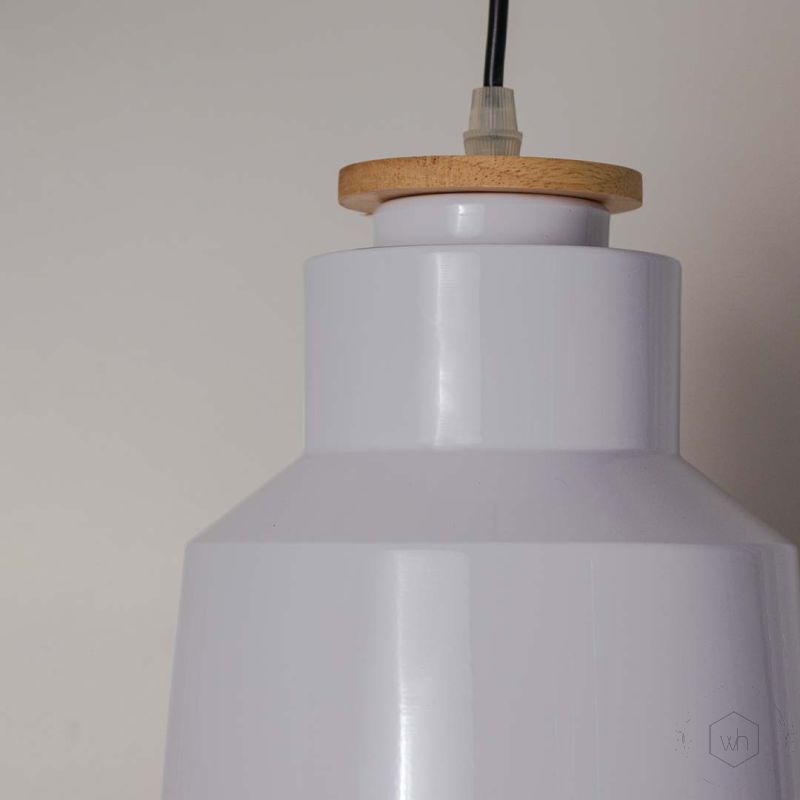 The smooth white finish reflects some ambient light outward, but the enclosed drum shape is primarily designed for focused downward illumination.